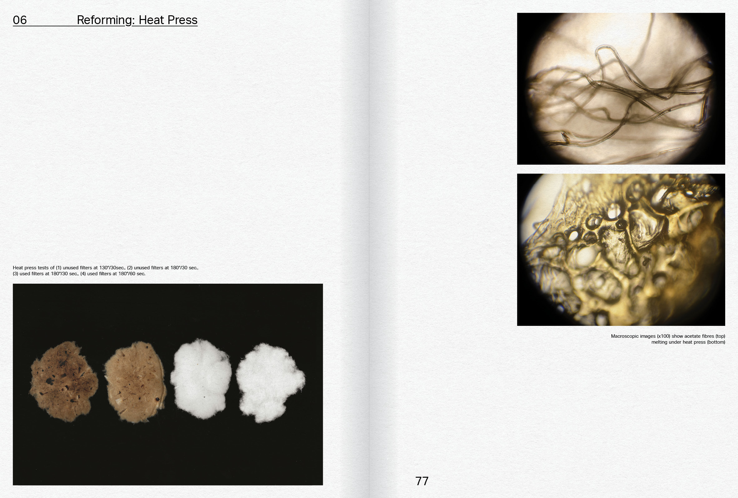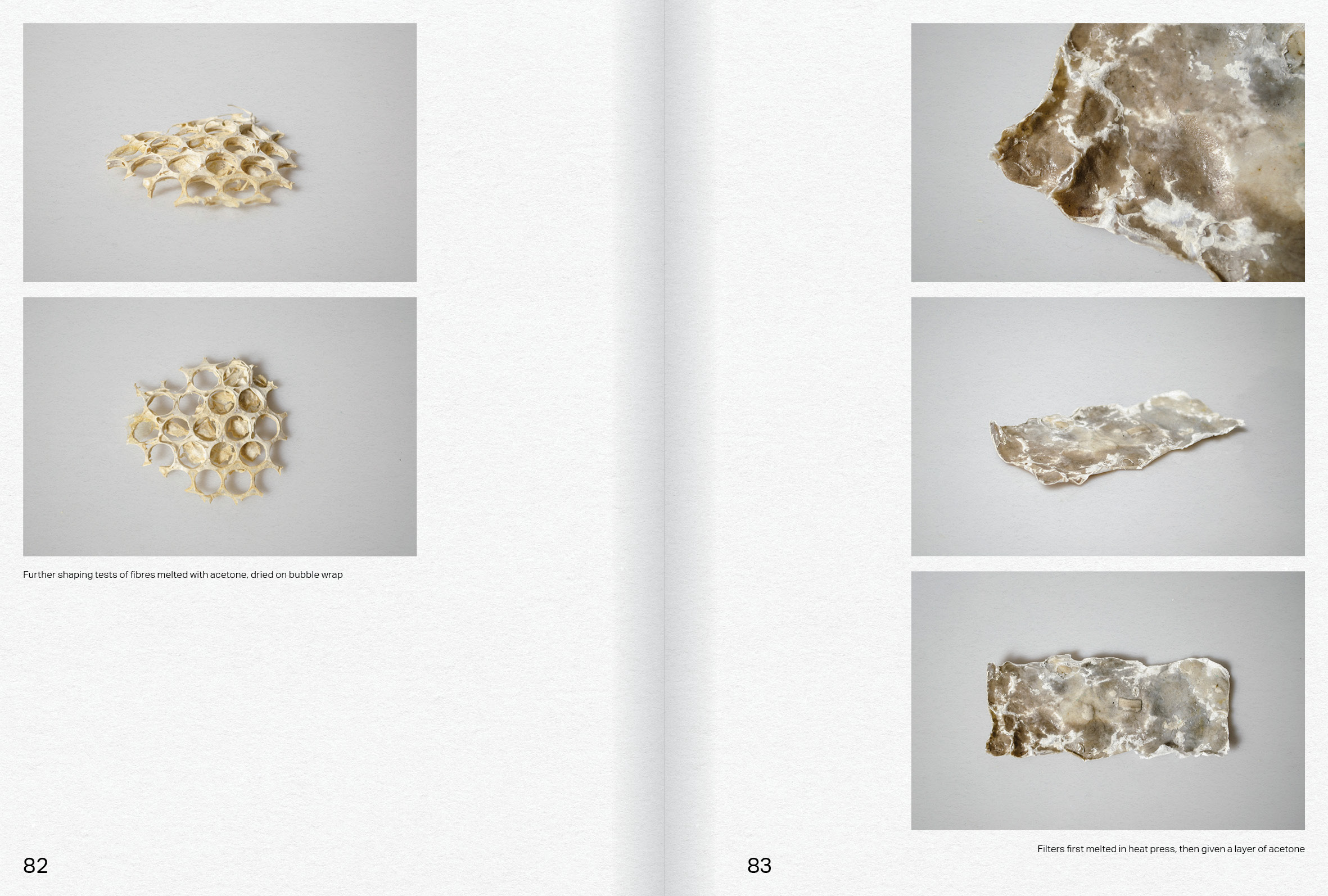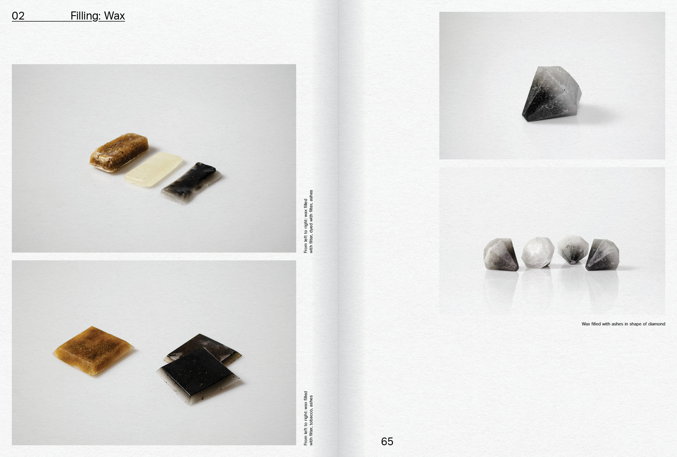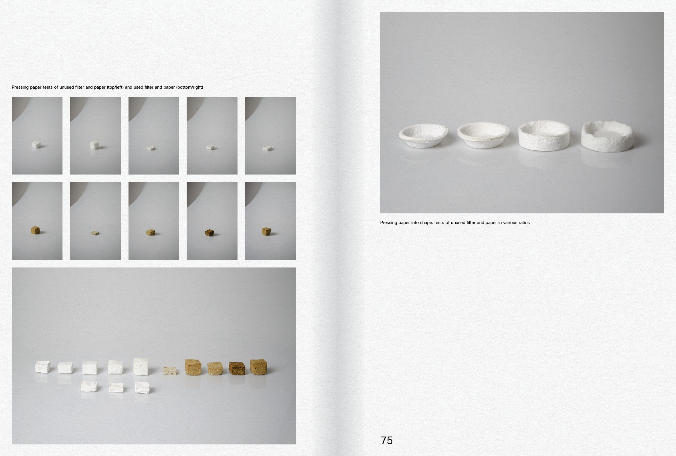 How can discarded cigarette butts be used as a medium to confront us with the impossibility of their recuperation? My master project from my final semester at kunsthochschule berlin weißensee aims to investigate the greenwashing behind recycling and how its concept can tend to justify the production of waste in a consumer-based system. Split into two parts, the first consists of a series of material tests aiming to find beauty in the components present in discarded cigarette butts. The second consists of a final product line and campaign named re:cig ironically advertising this form of recycling.